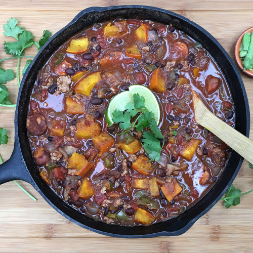 • When done, turn off the heat and let chili rest with lid off for 10-15 minutes to thicken. Taste and adjust spices to flavor preference. Add to each serving the desired toppings.