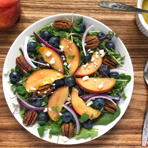 Blueberry Peach and Greens with Lemon Vinaigrette